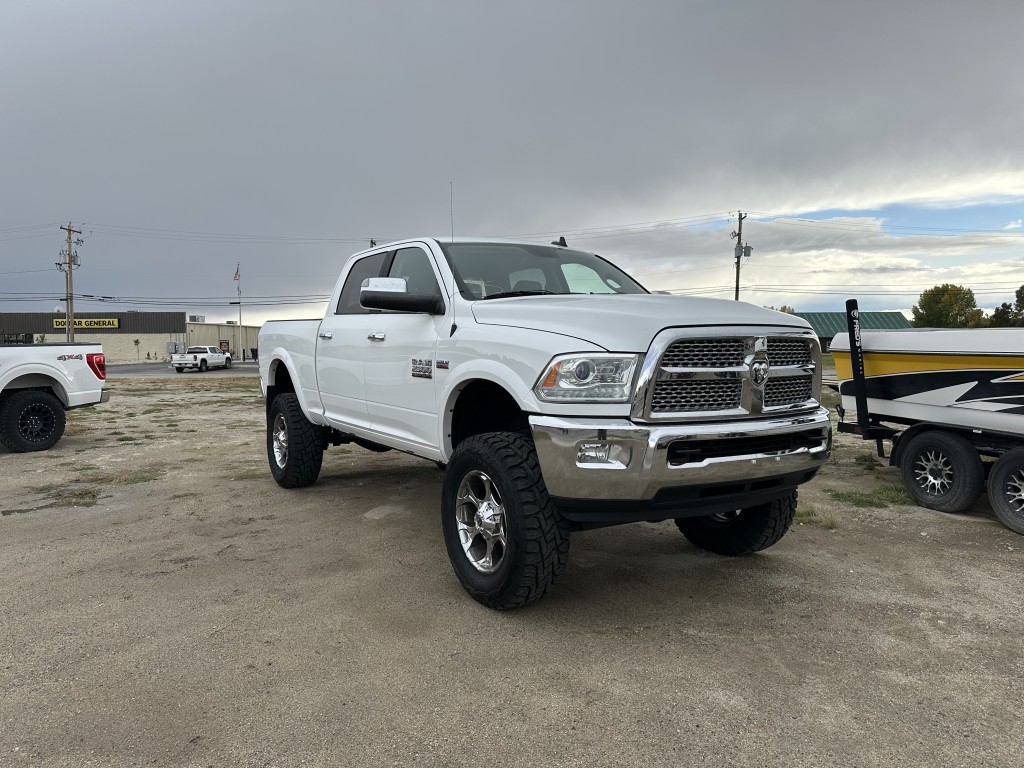 CHECK OUT THIS 2014 RAM 2500 CREW CAB LARAMIE WHITE IN COLOR. 6.4-L V-8 HEMI Automatic Four-Wheel Drive Gasoline 16 - 23 miles/gallon HWY WE CAN PROVIDE FINANCING TAKE IN TRADES. WE OFFER EXTENDED WARRANTIES AND GLASS PROTECTION AT A LOW COST. IF YOUR VEH GETS DIRTY DONT WORRY WE OFFER DETAILS AND ALSO INSTALL WINDSHIELDS. COME ON DOWN AND LET DOUG HELP!!! OR CALL 307-877-YNOT (9668)